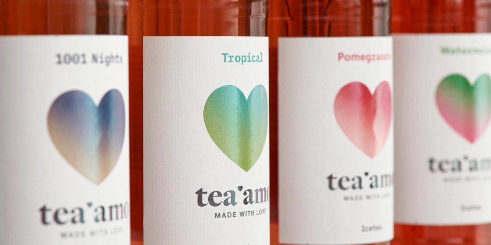 Lovely! A fresh look for a passionate start-up’s new product: a label design that sets accents with heart shapes.