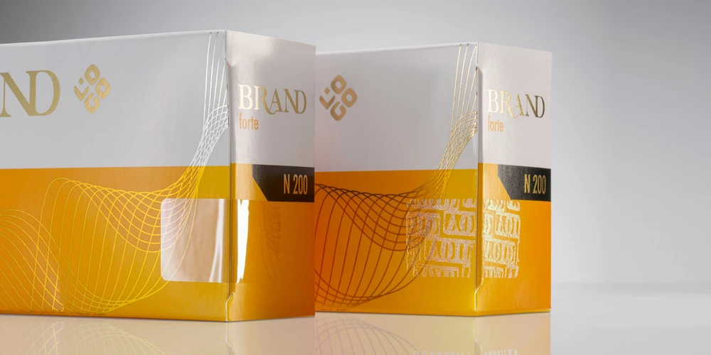 - Surface decoration for paper packaging, cardboard boxes, and labels